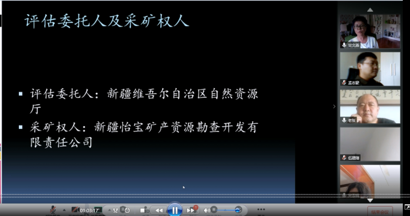 在疫情相當嚴重無法正常工作的情況下,大家能認真準備,積極參加視頻會,很好的完成各自的相關工作,配合新疆礦業聯合會完成了這批報告的論證,此次視頻會取得了預期的效果,在此新疆礦業聯合會向大家表示感謝。視頻會后,我們仍要堅持居家辦公,保質保量完成復核及公示等后續工作。同時新疆礦業聯合會也將密切關注評估公司正在進行和已完成評估報告,并按流程積極推進論證工作。有些簽字等手續,疫情過后補辦。