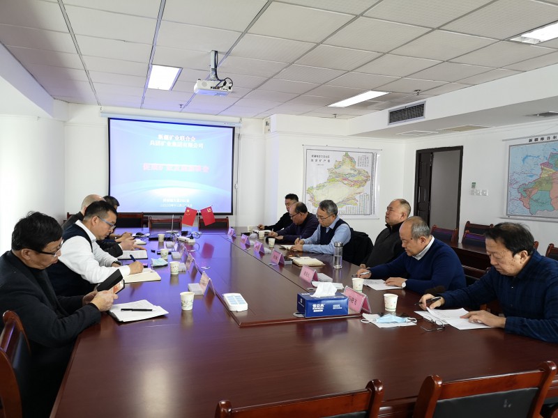 10月28日,新疆礦業(yè)聯(lián)合會與兵團國資公司姜勝副總經(jīng)理、兵團礦業(yè)集團有限公司鄒超董事長等一行五人,就“兵團礦業(yè)集團公司礦業(yè)發(fā)展”進行座談交流,新疆礦業(yè)聯(lián)合會專家(庫)趙美光、馮曉飛、陳克強、周剛參加了座談會。