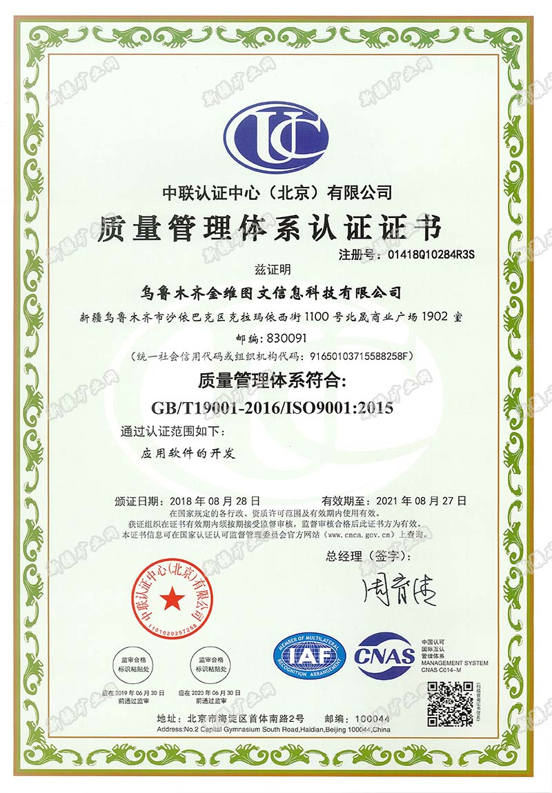 首頁 > 榮譽(yù)資質(zhì) > ISO質(zhì)量管理體系認(rèn)證證書