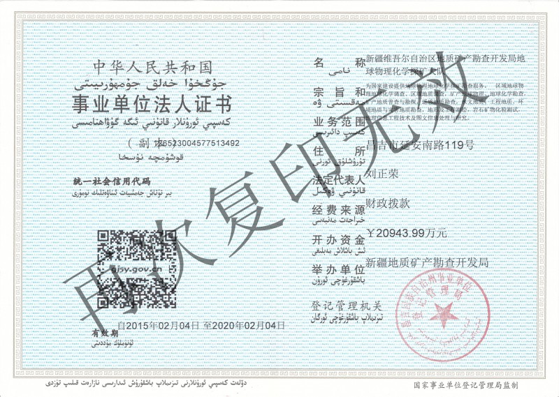 事業單位法人證書(副)