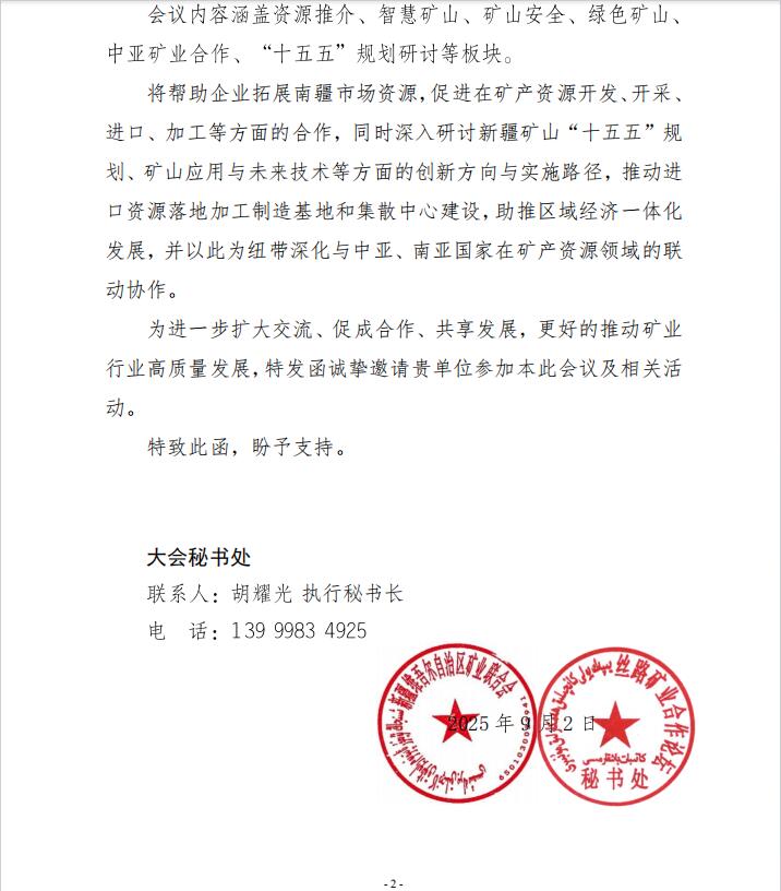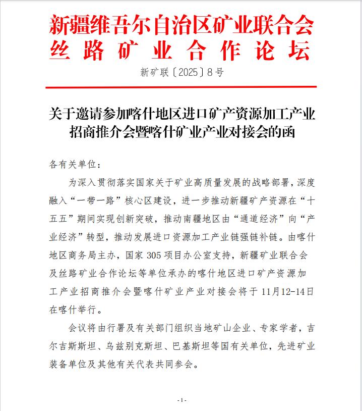 關于邀請參加喀什地區(qū)進口礦產資源加工產業(yè)招商推介會暨喀什礦業(yè)產業(yè)對接會的函