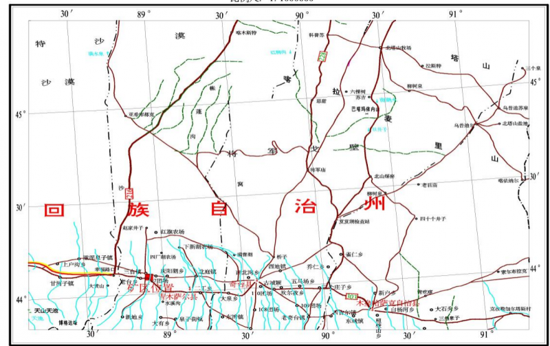 地理位置:位于新疆生產建設兵團第六師紅旗農場南戈壁2號建筑用砂礦位于新疆生產建設兵團第六師紅旗農場221°方向,直距約24千米處,屬新疆生產建設兵團第六師紅旗農場管轄。礦區(qū)中心地理坐標 (CGCS2000坐標系) 為 : 東經 88°54′06.42”, 北緯44°03′37.21”。自新疆生產建設兵團第六師紅旗農場出發(fā)沿209縣道向西南行駛32千米后到達礦區(qū),道路路況較好,交通較為方便 。