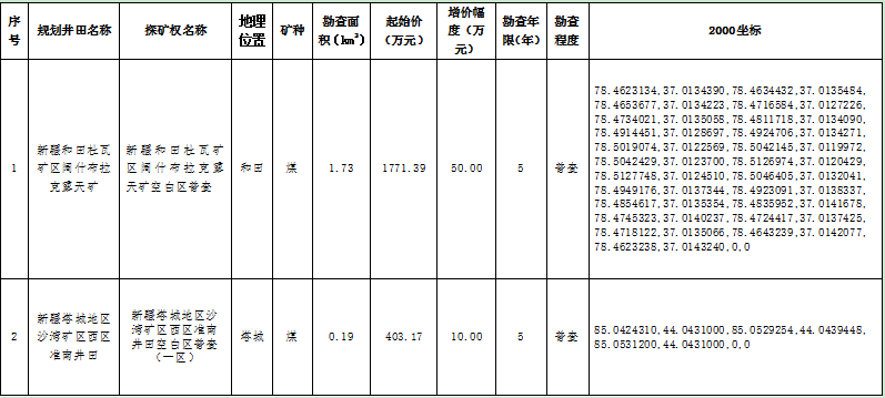 本次出讓標的均為煤炭探礦權,其范圍是煤炭規劃井田內已設煤炭礦業權與規劃井田邊界之間空白區的探礦權(詳見附件1)。