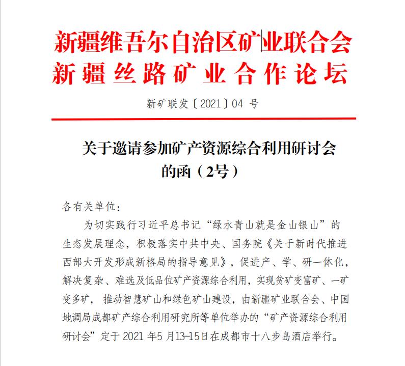 關于邀請參加礦產資源綜合利用研討會 的函(2號)