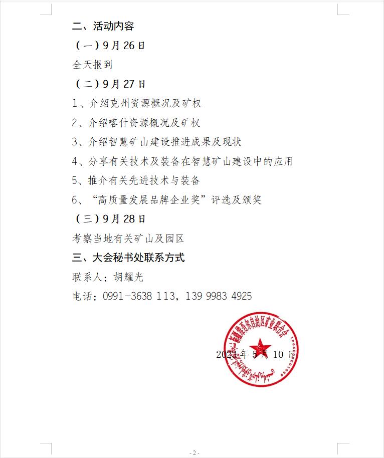 關(guān)于邀請參加喀什地區(qū)進(jìn)口礦產(chǎn)資源加工產(chǎn)業(yè)招商推介會暨喀什礦業(yè)產(chǎn)業(yè)對接會的函